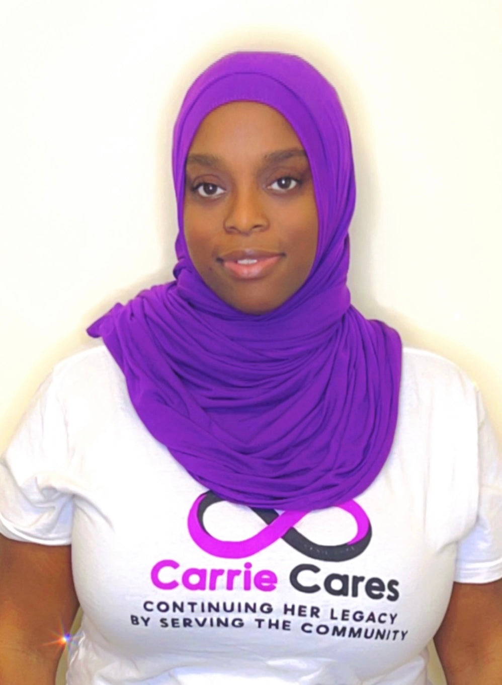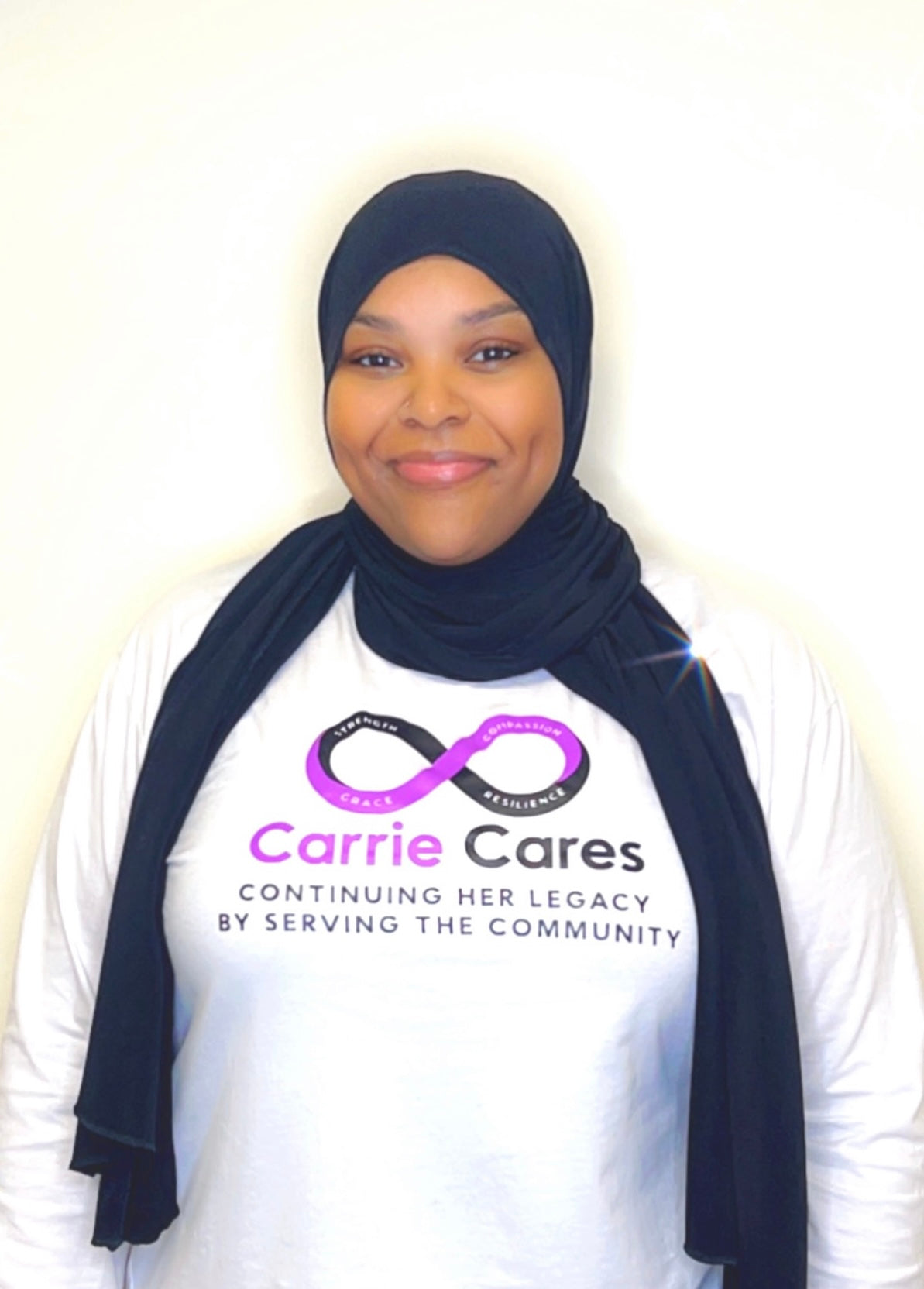 Kareemah Abdur Rahim is also one of Carrie's great-granddaughters. She grew up in the West Oak Lane section of Philadelphia, Pennsylvania. From a young age, she understood that her name means kind and generous. She has always done her best to live up to the meaning of her name by showing acts of kindness and generosity to those around her. With a degree in Restaurant Management, cooking has always been a passion of hers, but starting a non-profit organization with her "cousin-sister", Natasha has helped her find a new purpose in life. Kareemah has been an entrepreneur since 2020, which has been another blessing for her. Kareemah serves as one of the Co-Presidents of Carrie Cares, Inc.